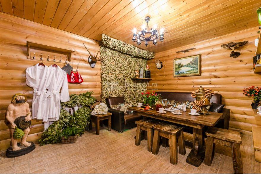 Наш банный комплекс состоит из четырех русских бань с отдельными входами. В каждой баньке парная, душевая, бассейн, ледяная купель, комната отдыха. На 2-м этаже расположены русский и американский бильярд, комната отдыха. При выходе из баньки есть бодрящая прорубь. Дополнительно можно арендовать теплую беседку у водоема. Деревянная беседка расположена в непосредственной близости от воды, живописного открытого водоема. В беседке большой стол с удобными креслами; телевизор и музыкальный центр с караоке, бесплатный WI-FI. Рядом мангал и все необходимое для приготовления блюд на углях; большие летние качели и теннисный стол. Аренда мангала - дополнительная услуга, которая входит в стоимость аренды беседки или - по желанию - предоставляется отдельно.